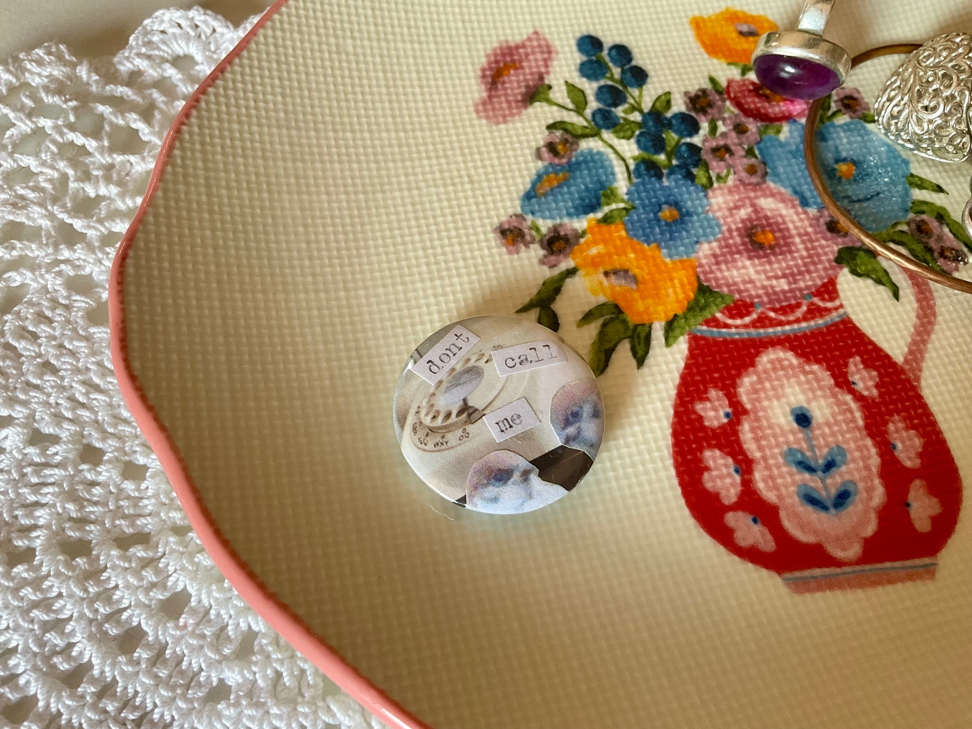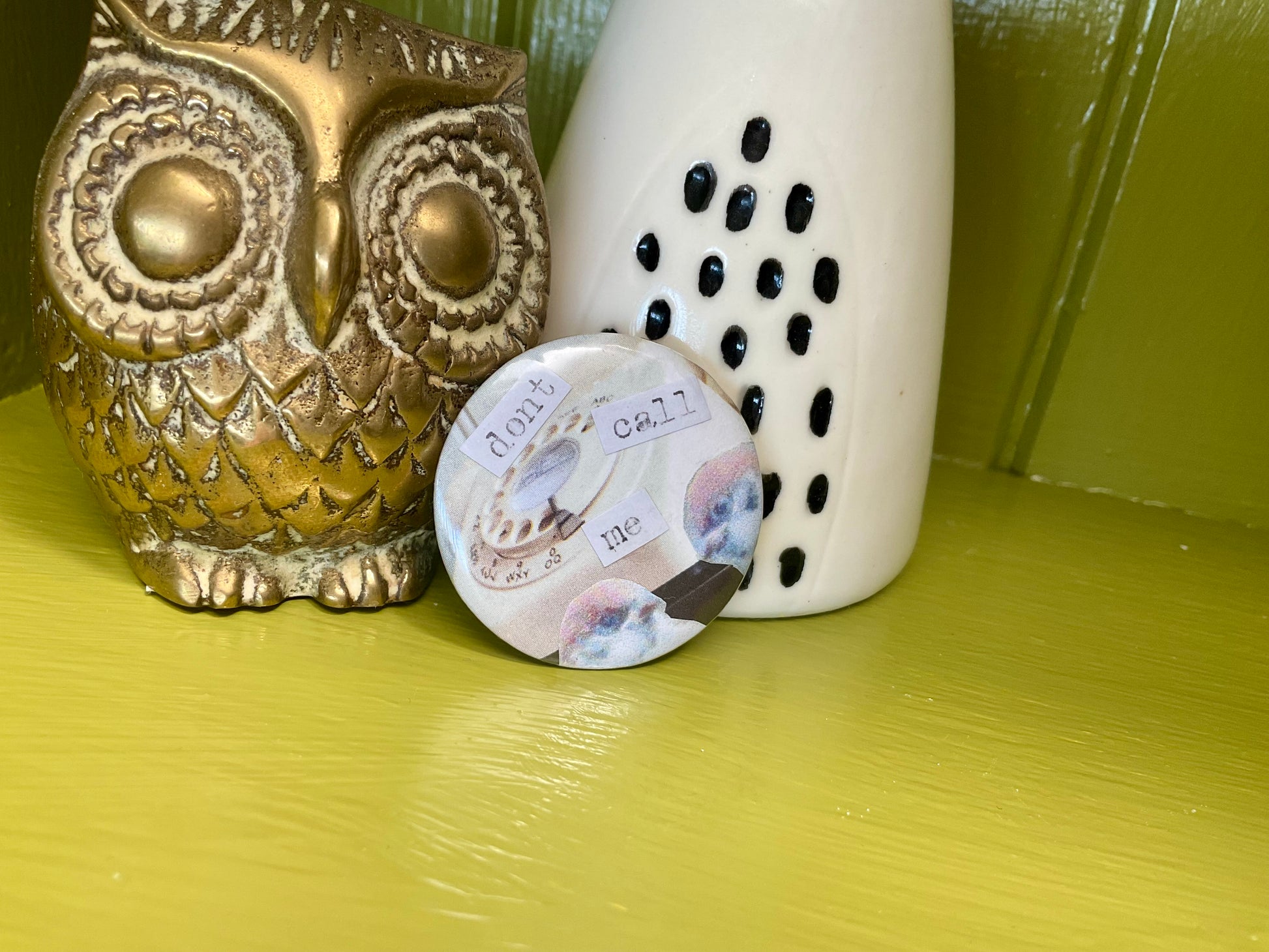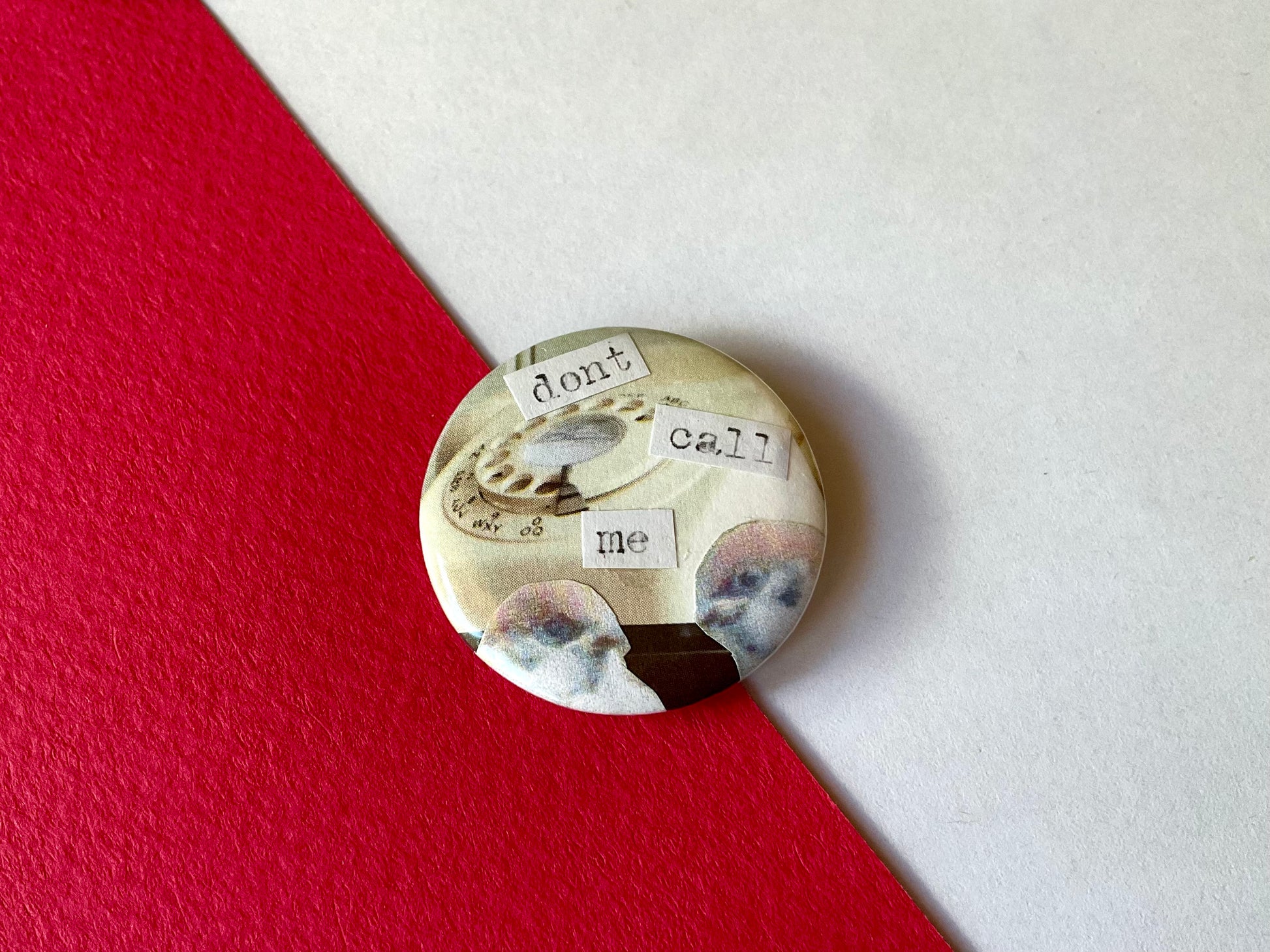 Sometimes birds just don’t want to talk. 1.5 inch or 3cm plastic backed pin badge featuring unique collage design. Free UK shipping
